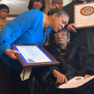 On February 4, 2020 the Detroit Association of Women’s Clubs, Inc. had the pleasure of celebrating Ms. Lois Russell Holden’s (Mother Holden) 110th birthday. Alongside her family and friends, the clubhouse welcomed Wayne County Commissioner Jewel Ware, Rep. Isaac Robinson, AKA Tau Alpha Omega Chapter, Fox News and Motown Music. Thank you so much for joining us in celebration of matriarch Mother Holden and Black History Month.